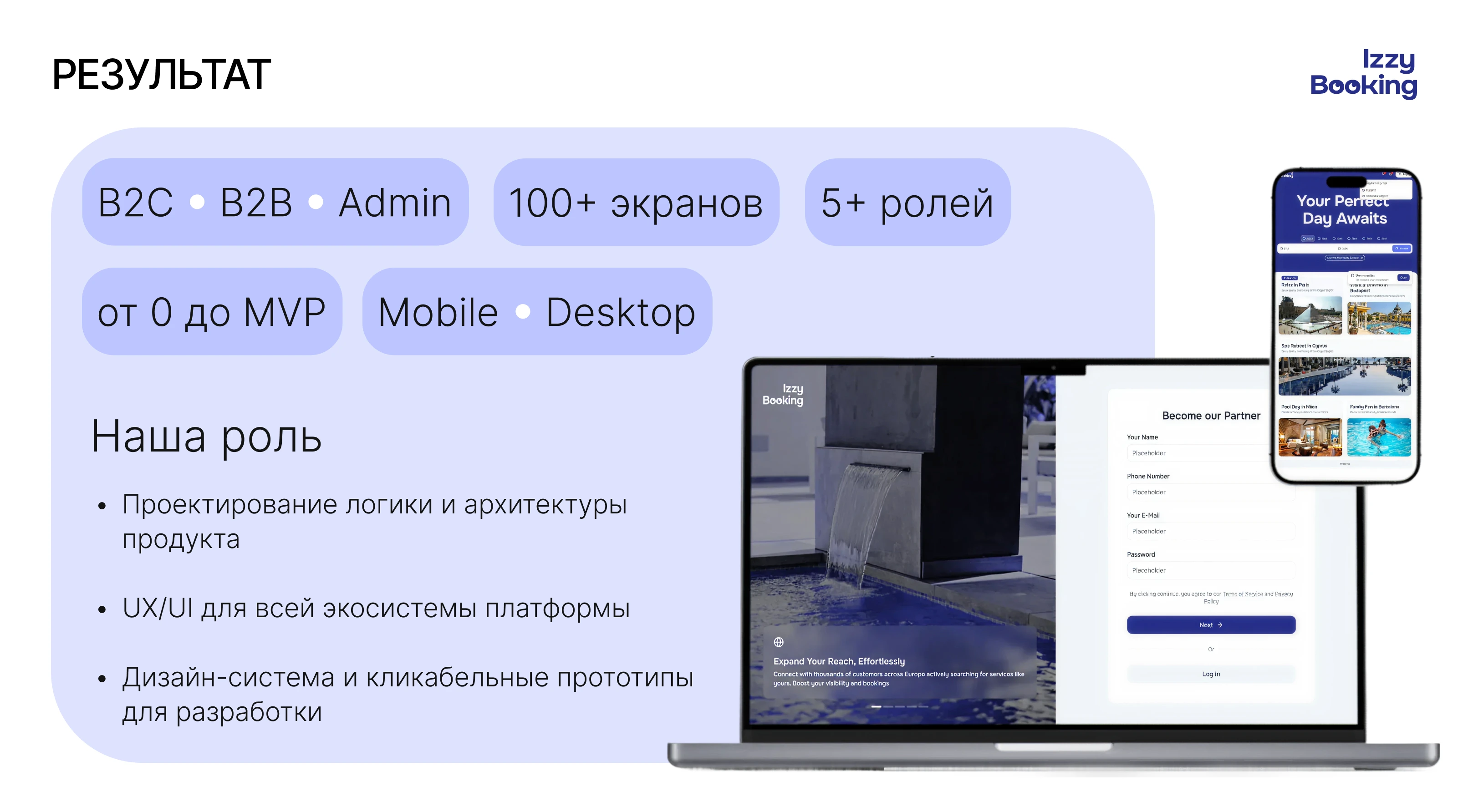 Делаем продукт под цели бизнеса и измеримые метрики. В работу берём только то, что даёт результат.